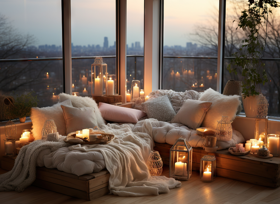 - Fall/Winter: Heavy blankets, candles, deep colors, soft lighting.